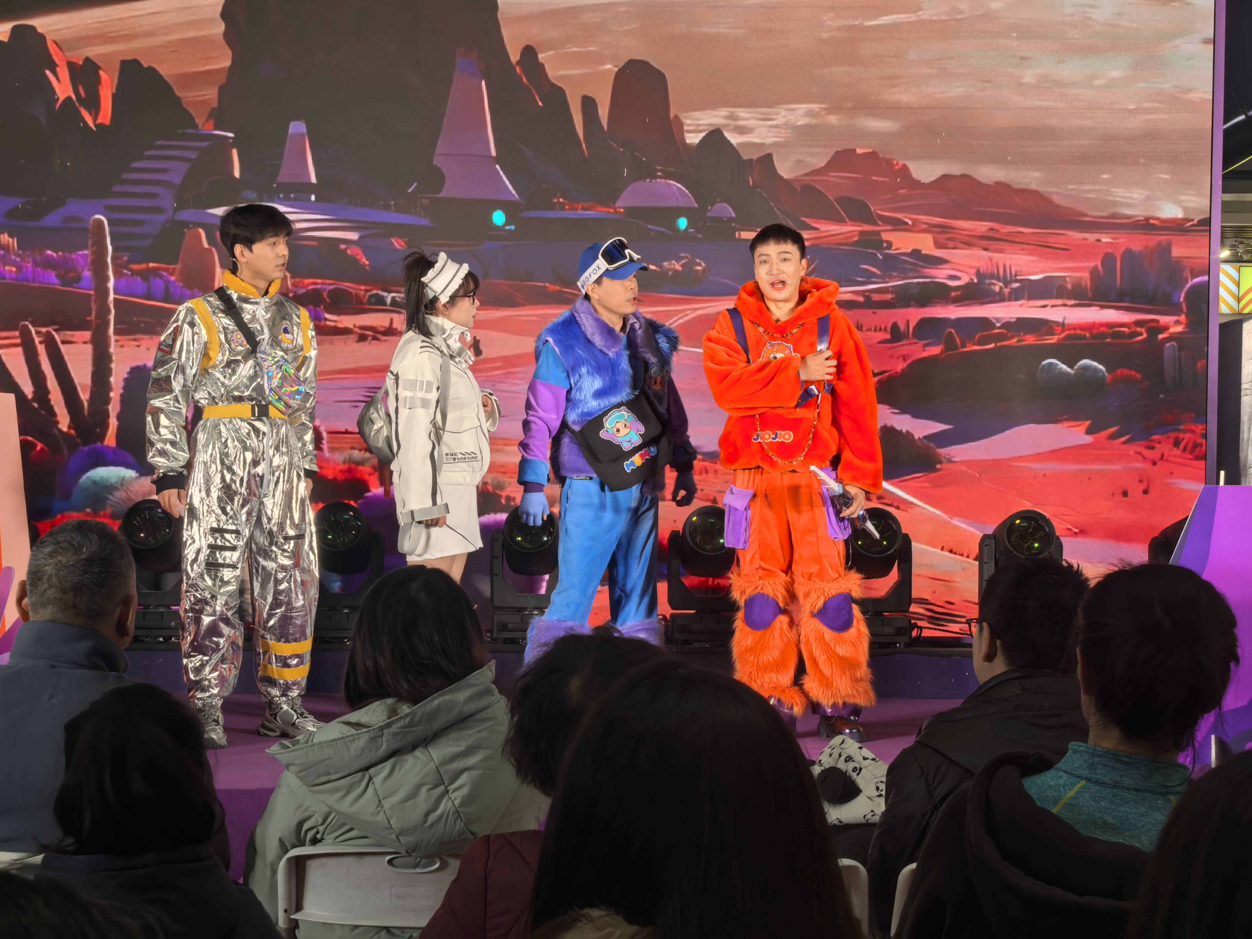元旦当天,项目原创推出的开幕大戏《NE99·能量纪元》正式上演。该剧以沉浸式互动演绎的形式,生动引出NE99星球世界观的七位核心IP原住民,通过剧情推进、角色互动与观众参与,将“能量唤醒”“星际探索”等主题概念自然融入现场体验。