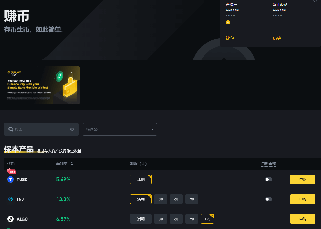 存币生息产品一般是由中心化平台推出,比如欧易(OKX)、币安(BInance),通过官网找到对应的产品申购即可。