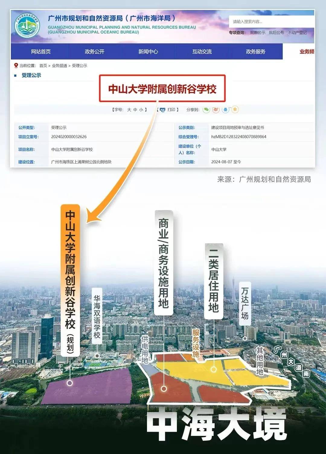 旁边现有华海九年一贯制学校,即华附海珠国际双语学校,项目西北面直线公里就是中山大学。