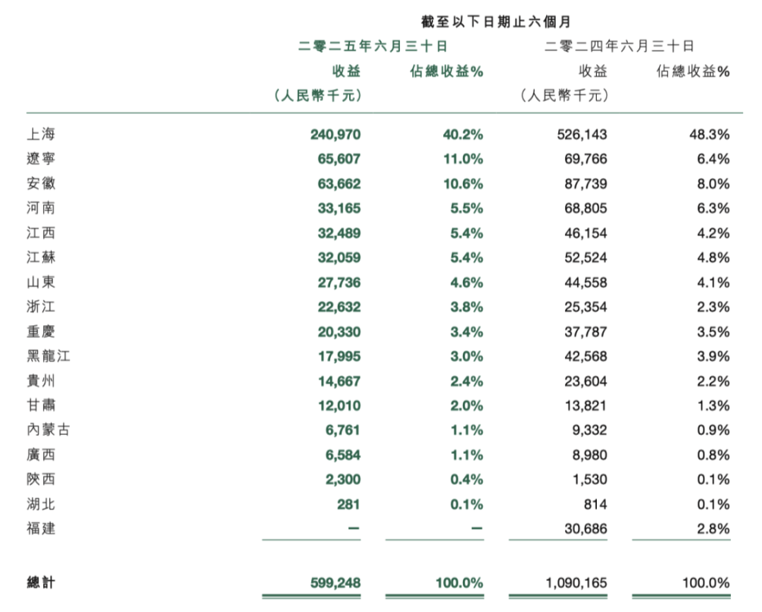 截止最新财报(2025年半年报),福寿园正在运营的墓园和殡仪设施位于全国十七个省的主要城市、直辖市和自治区的战略要地,其中上海地区收入2024年之前基本占了一半,2025年上半年下降到了40%。